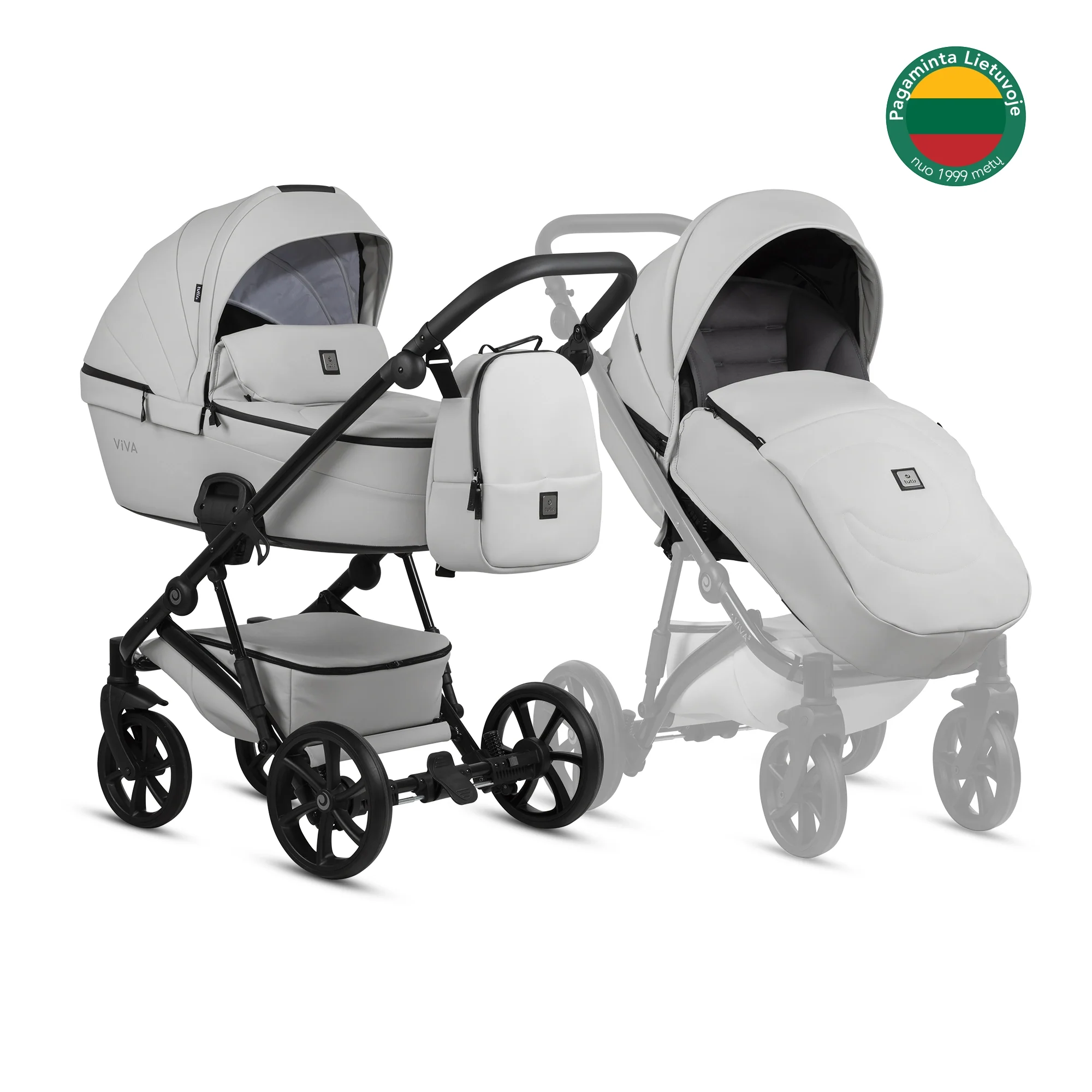- Dvi važiuoklės palvos – juoda ir pilka